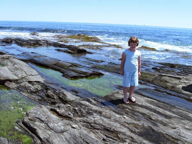The beach at Cape Elizabeth was rocky but we were able to walk down to the water. The girls played by the ocean while the boys finished their lobsters. The water is cold here.